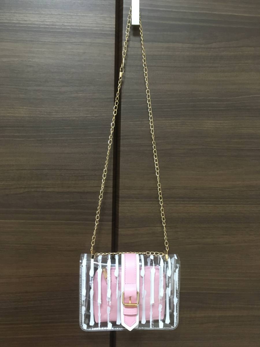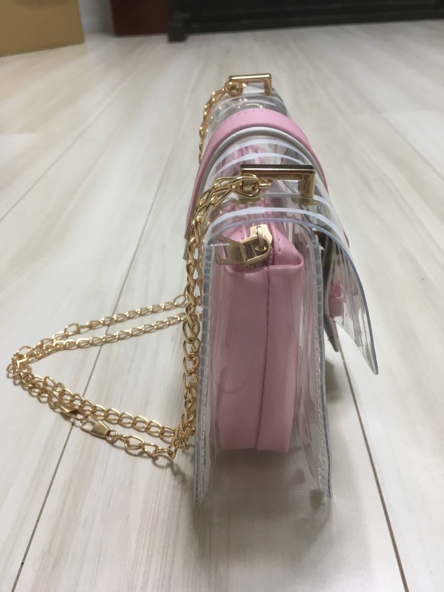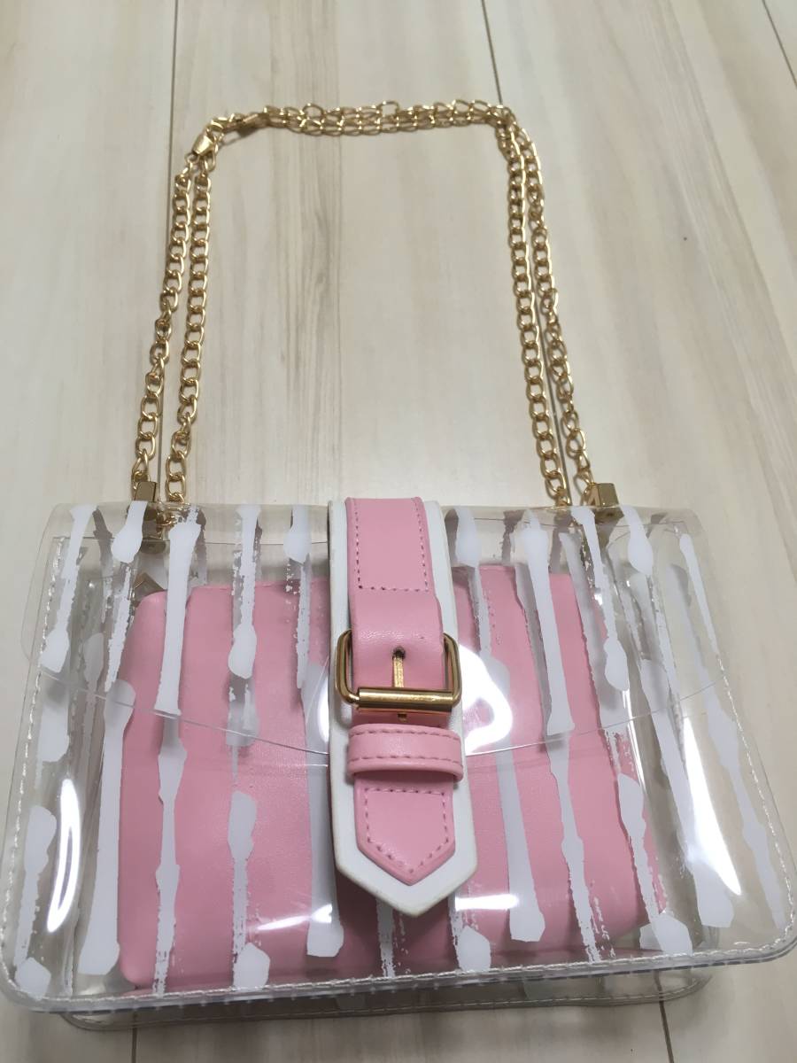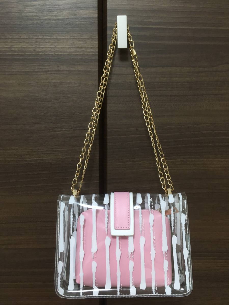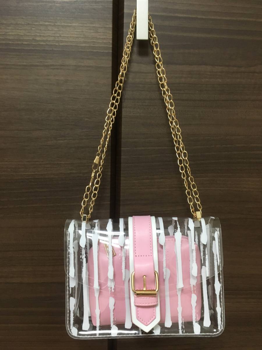 〇商品詳細 ・クリア素材でみにチェーンショルダーバッグです! ・注目の眼差しまちがいなし(^^)(^^) ・取り外し可能なポーチ付き☆ 素材:PU カラー:ピンク サイズ:19.5×14×5.5cm よろしくお願い致します☆彡 | |||