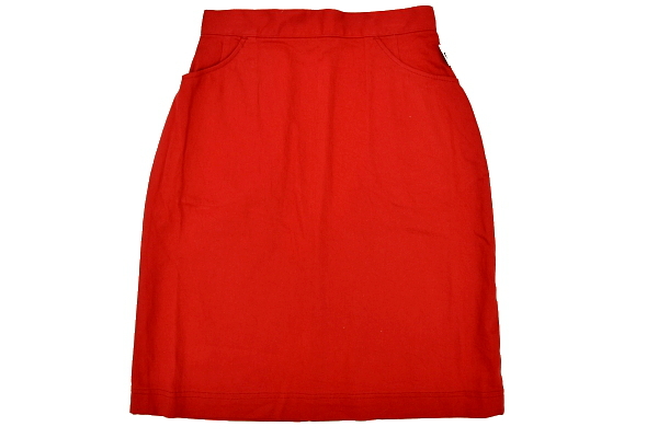 レッドカラー 膝丈 後ろファスナー 台形スカート
