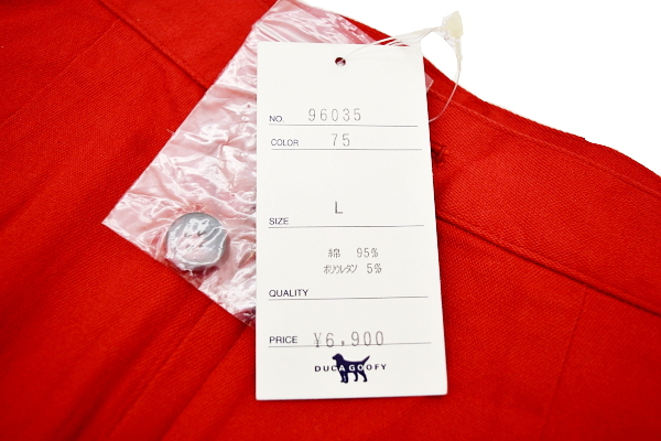 M681★送料無料★新品★DUCA GOOFY デュッカ グーフィー 定価6900円★日本製 レッド赤色 ストレッチ素材 膝丈 台形スカート L