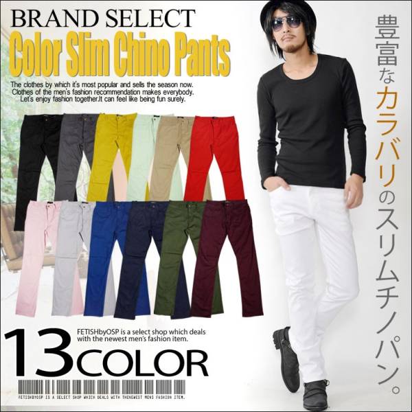 豊富なカラバリをそなえたオススメのスキニータイプチノパンツの登場です。