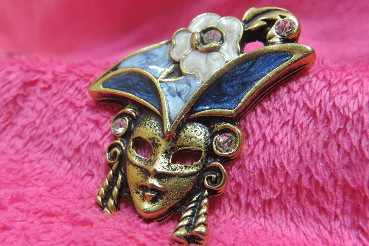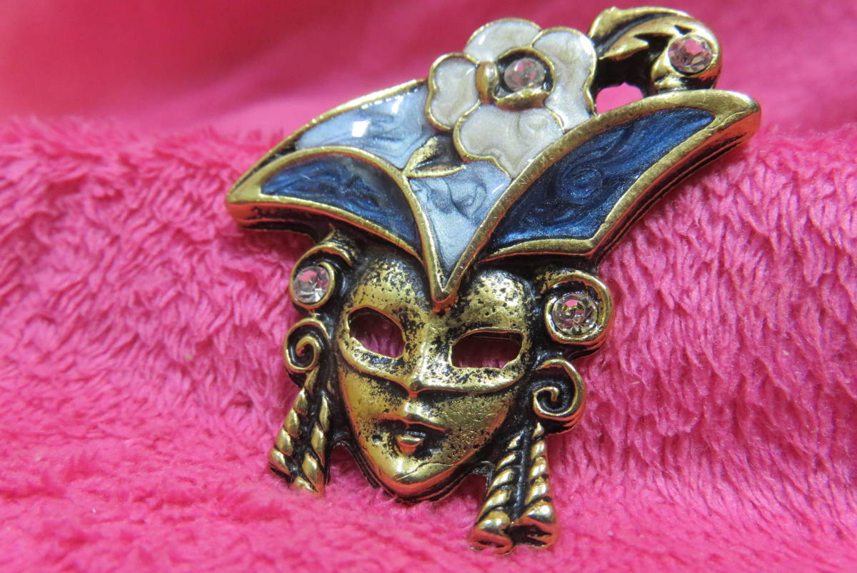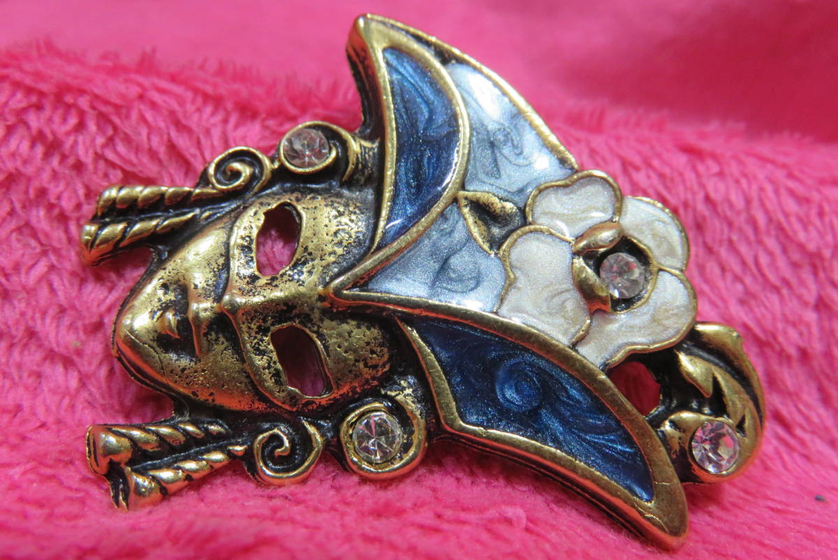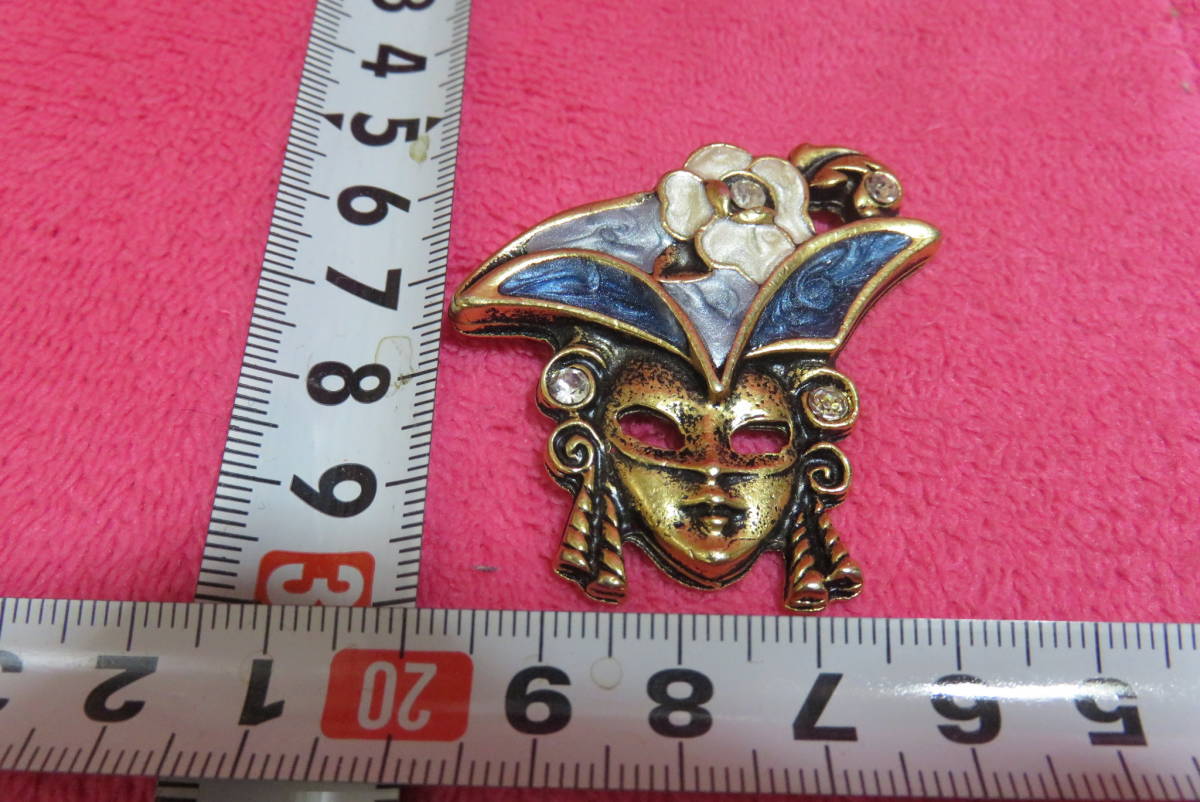 E5629  ブローチ    アンティーク調   ラインストーン   仮面