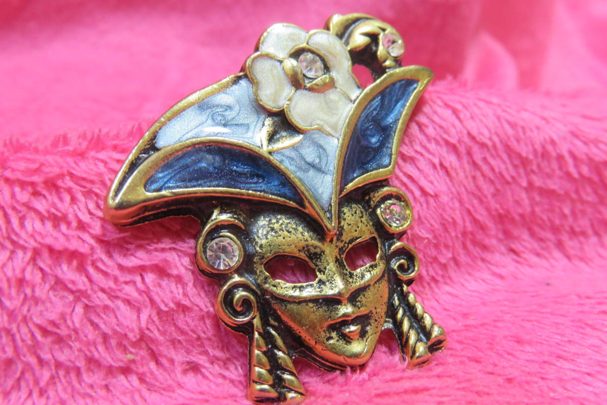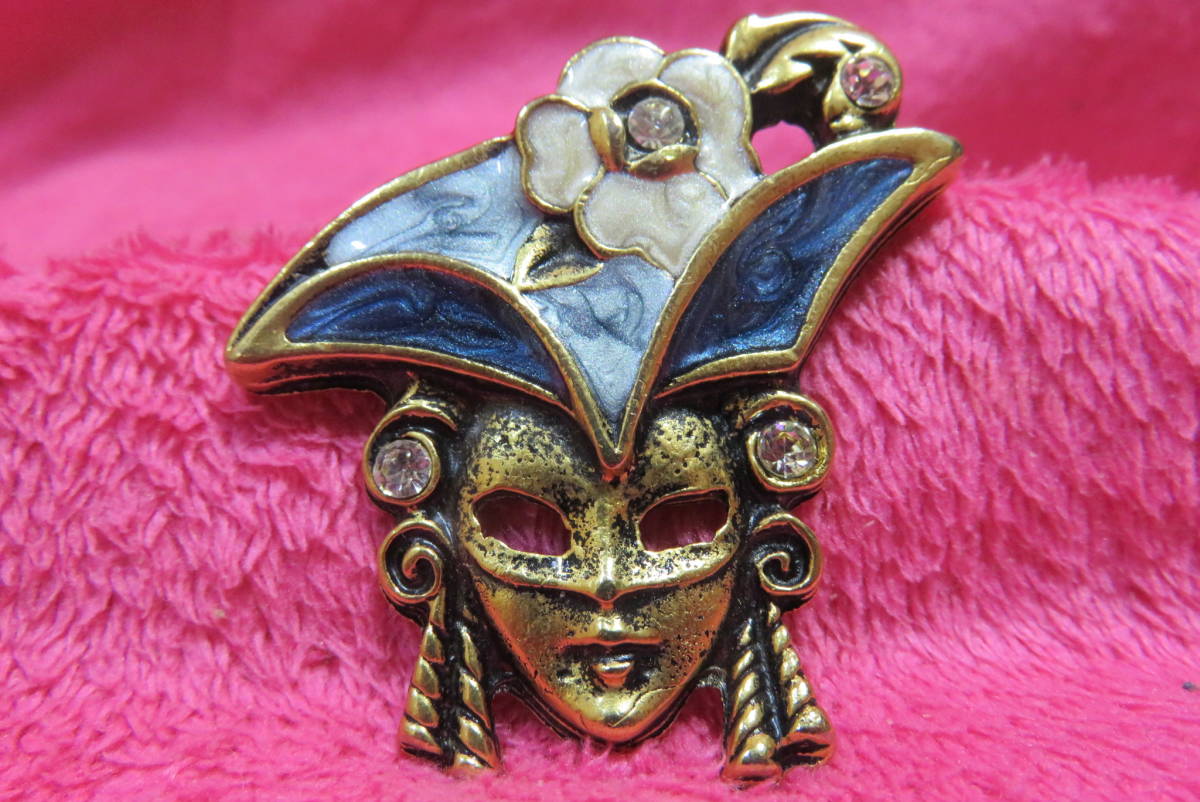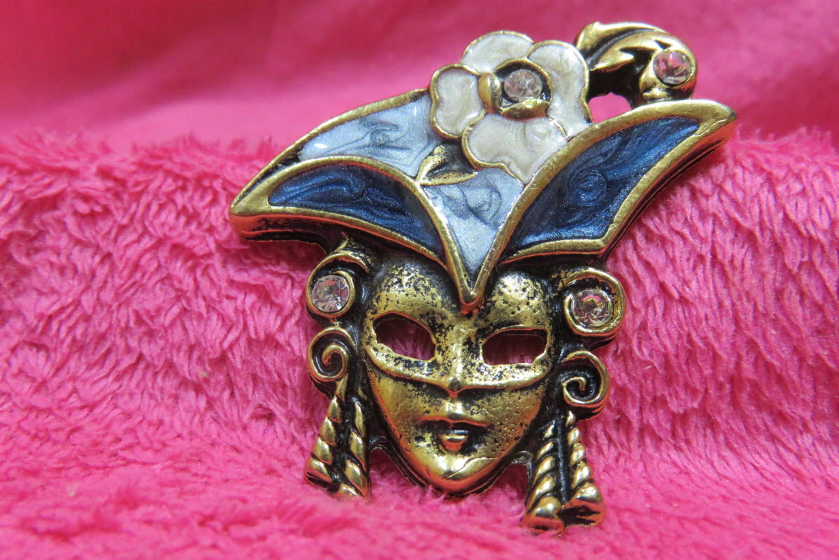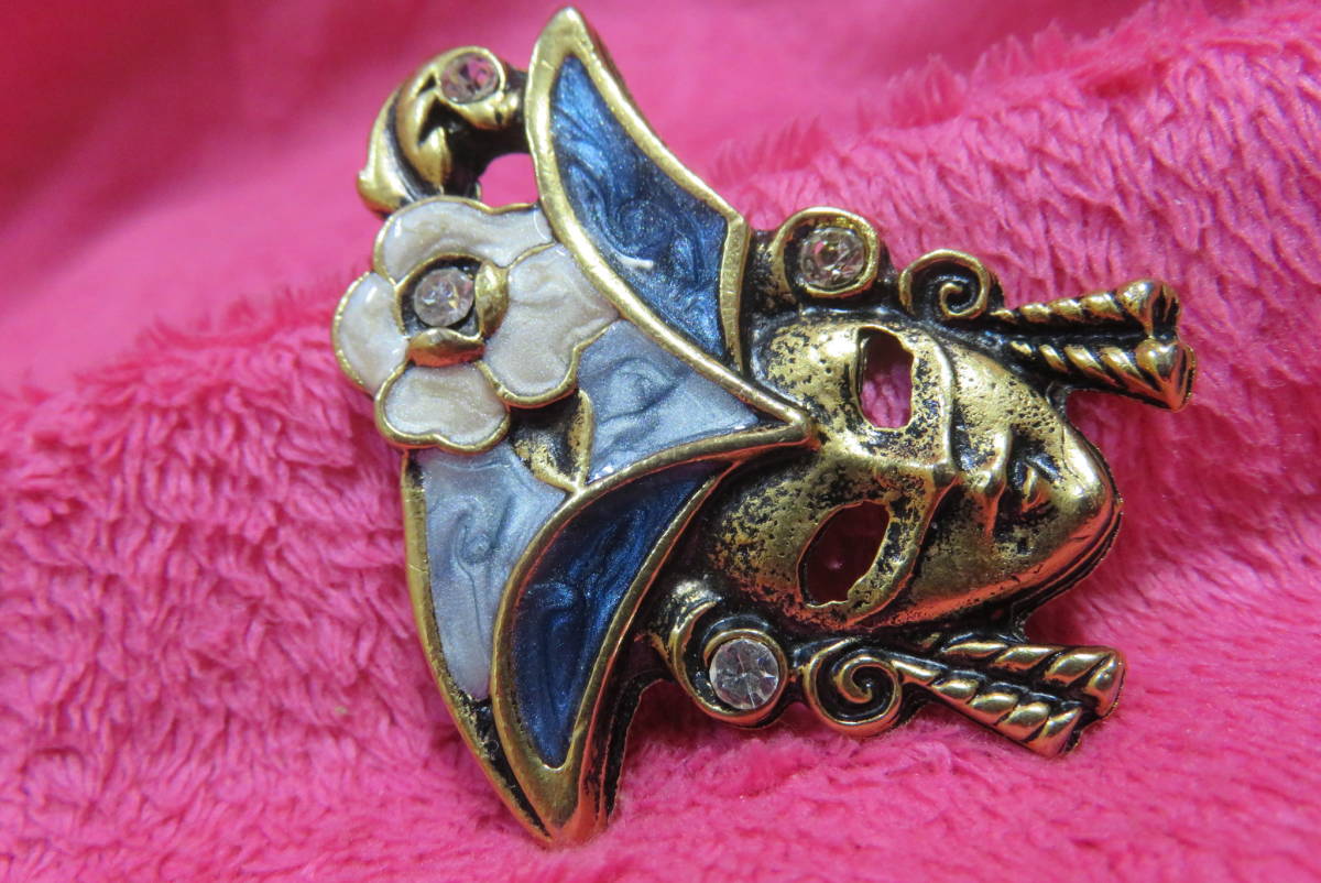E5629  ブローチ    アンティーク調   ラインストーン   仮面