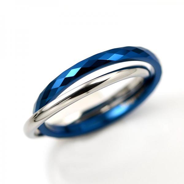 甲丸ダイヤ柄カットブルータングステン&甲丸ステンレス2連リング