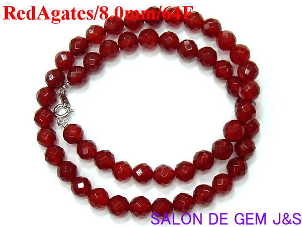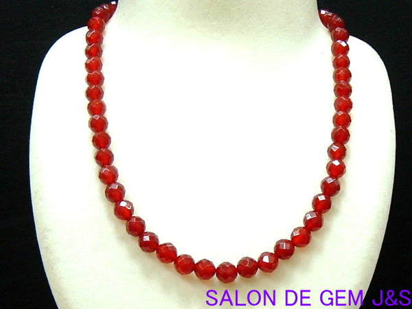 【新品】【上質】【高級天然赤メノウ64面カット デザインネックレス】8.0mm/43cm