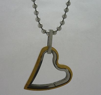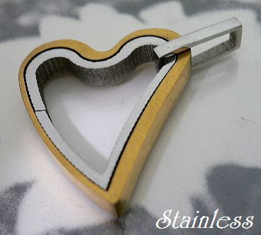 在庫処分★サージカル ステンレス製ツートン重ねハート ペンダント/ステンアクセALL50%OFF