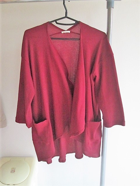 〔送料込みです〕guラメ入り☆ワイン色ポケット付きカーディガン