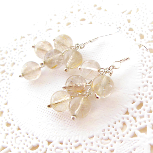 ルチルクォーツ シルバー製フリンジピアスAJ *大人可愛い(*^_^*)* |