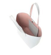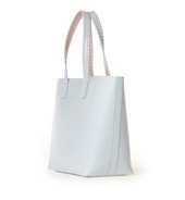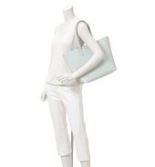 マチがたっぷりあるので、お荷物の多い日のお出かけや通勤・通学にもおすすめです。ハンドルは肩がけができる長さで、間口にはマグネットボタン、と機能的な仕様です。ライトグレー×パウダリーピンクは、ハンドルの裏やバッグの内側からちらりと見えるピンクが映えるキュートなカラーリングです。とても素敵なバッグで、オールレザーですので手触りもいいです。
