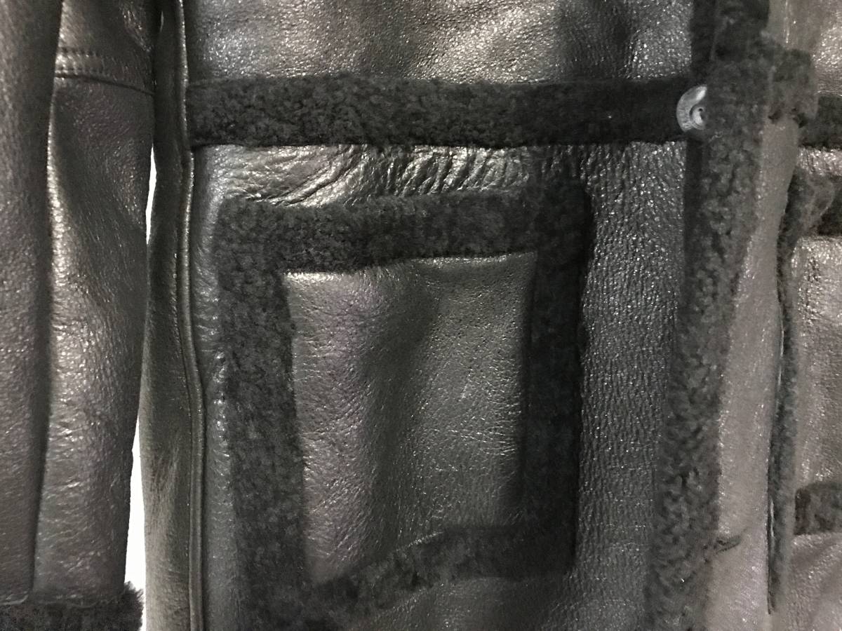 新品セレブレザー本革羊皮ラムデカビッグムートンチェスターコート毛皮ボアリアルファージャケット56黒3XLブラックメンズビジネススーツ