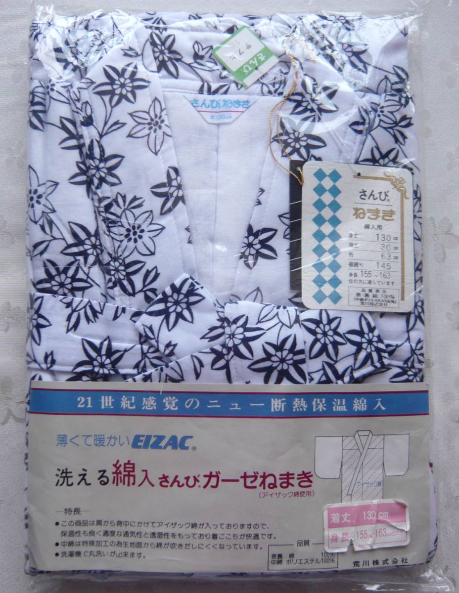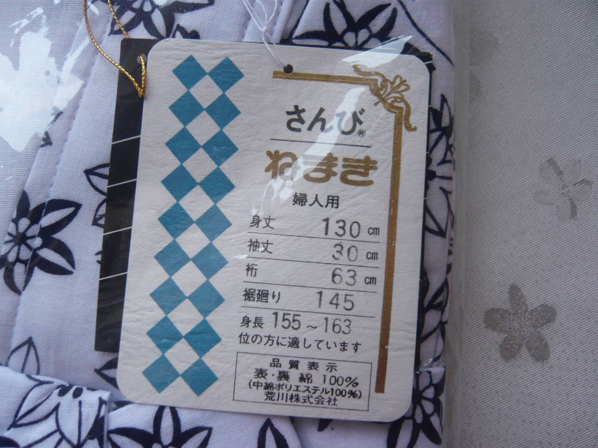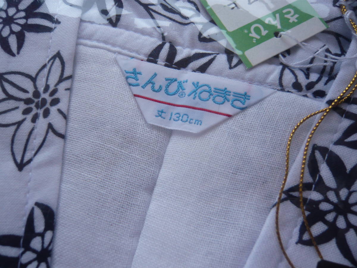 | ★ 商品名 *未使用美品★婦人用浴衣寝間着★白色 紺色花柄「洗える 綿入りさんびガーゼねまき」中綿入り★綿100% Mサイズ 身丈130cm★着物★2596 |
