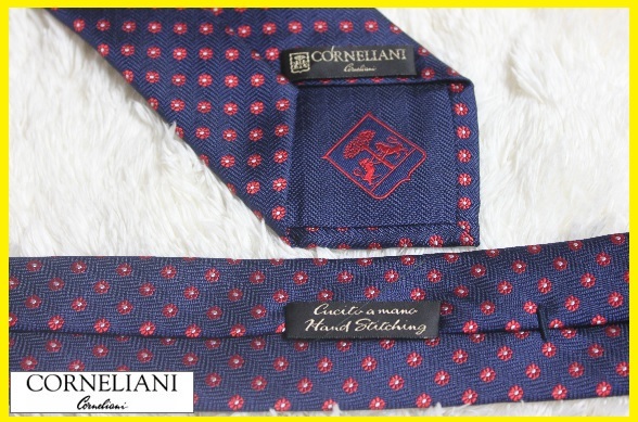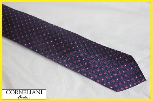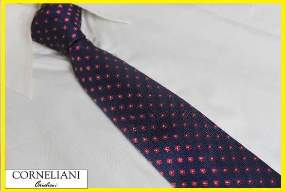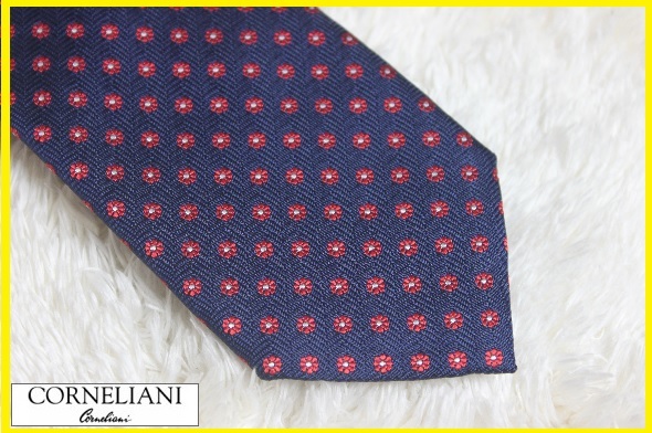 商品名 | 新品・未使用コルネリアーニ(CORNELIANI) 100%シルクデザイン柄ドットネクタイ タイ NO.308(ネイビー系)HAND STITCHING |