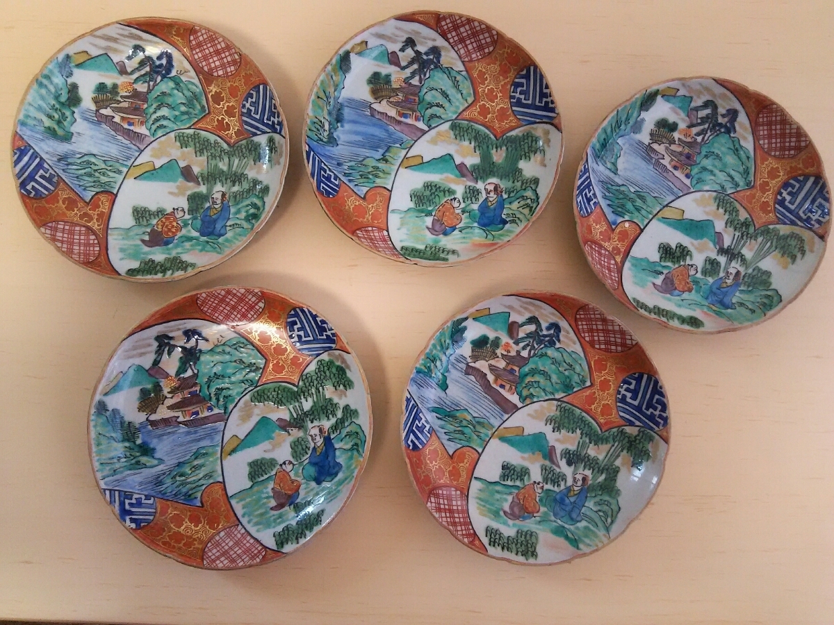 こちらは、九谷焼 庄三 赤絵金彩 古い皿5枚セットです。