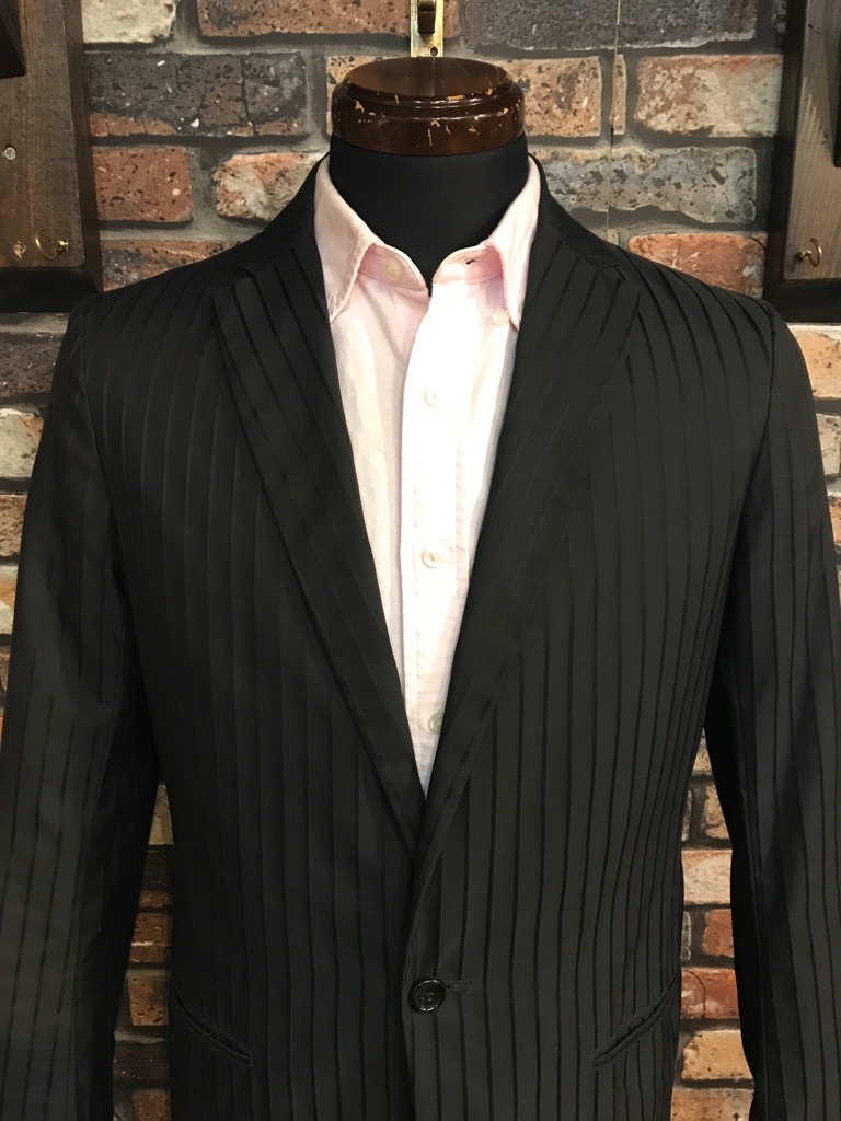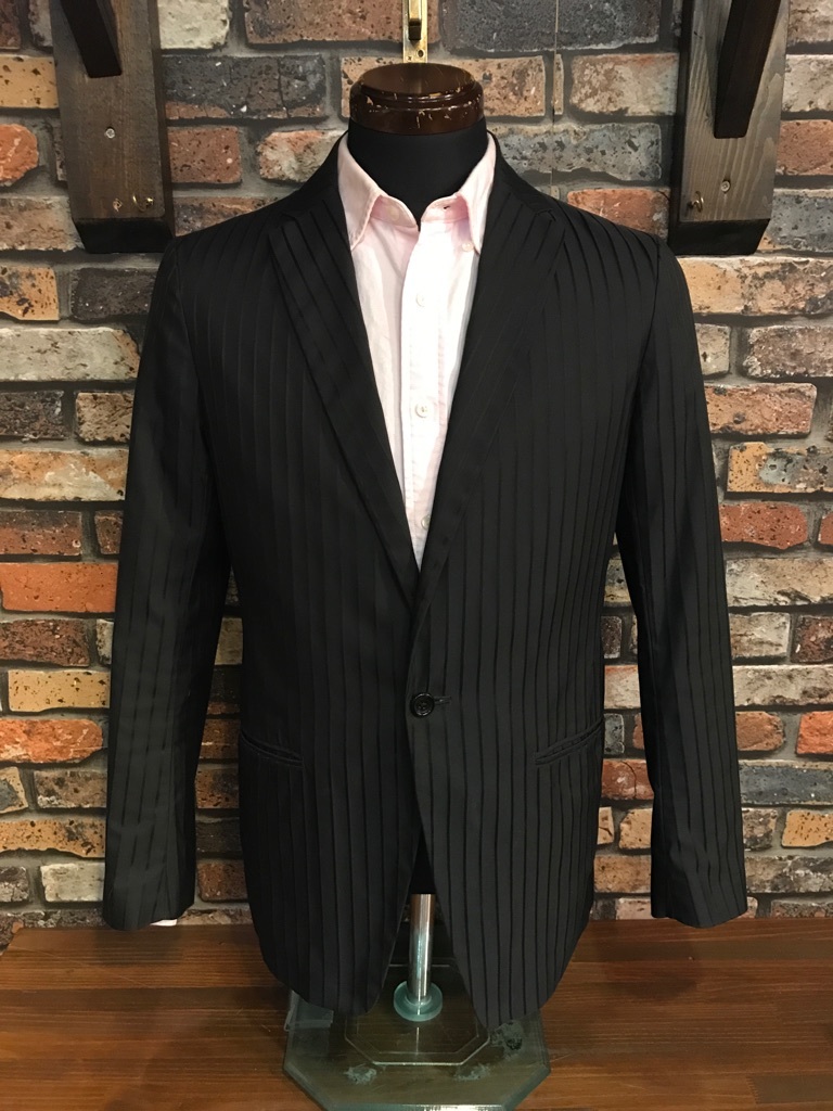 F438 メンズジャケット UNITED ARROWS テーラード ユナイテッドアローズ キレイめ おしゃれ 人気 タイト 1釦 1B ブラック ストライプ 柄/ M