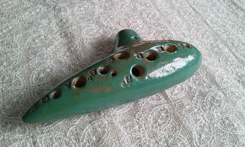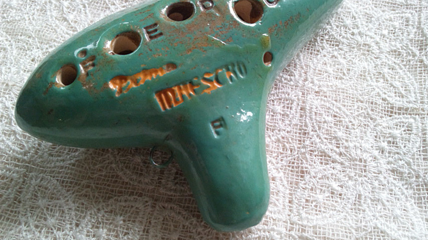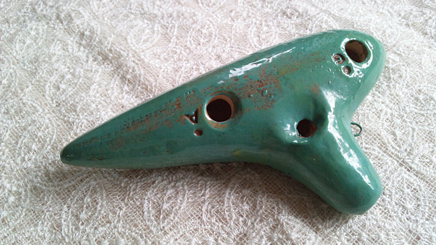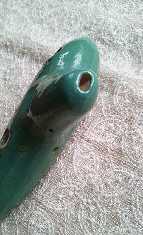 きれいなピーコックブルーの小ぶりなオカリナです。