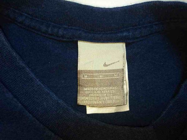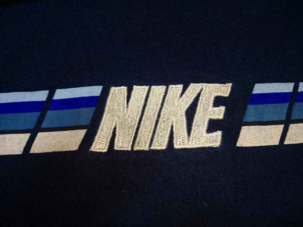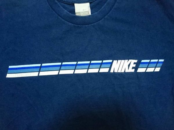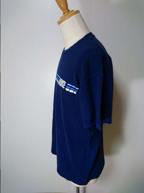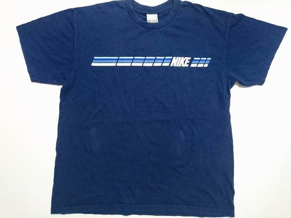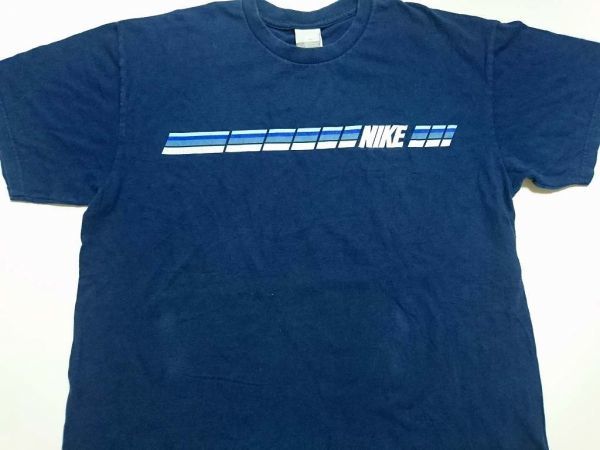 US USED ナイキ ラインプリント ロゴ 刺繍 Tシャツ【M】ネイビー