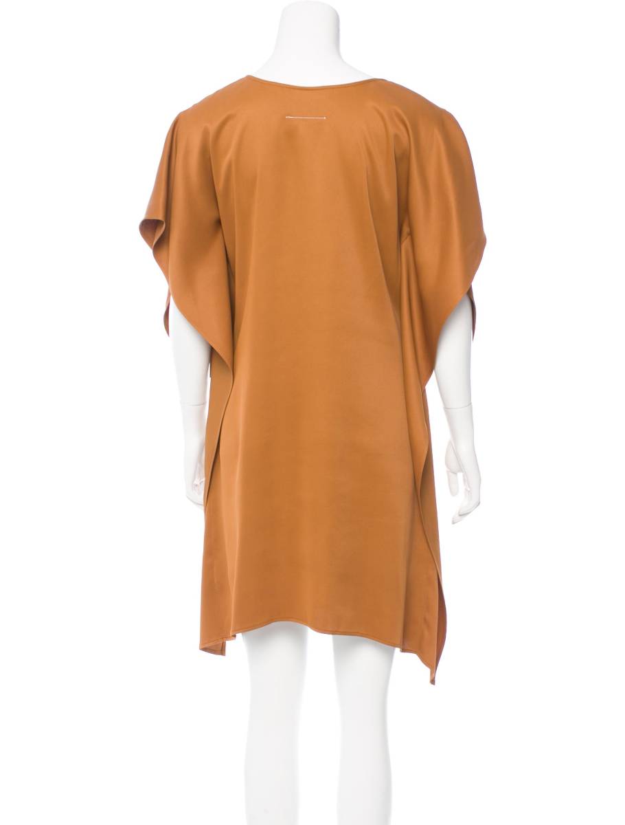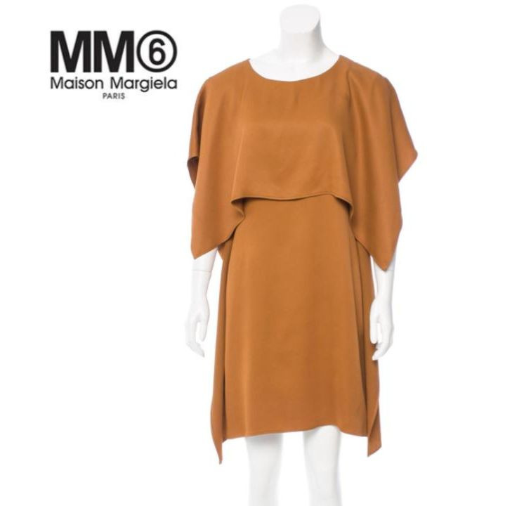● MM6 Maison Margiela マルジェラ ワンピース 42 M 半袖 ブラウン 新品 イタリア製 チュニック さらり レイヤード ドレープ ノースリーブ