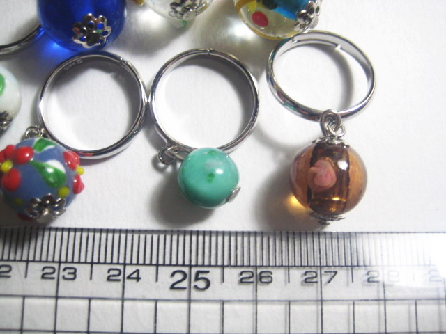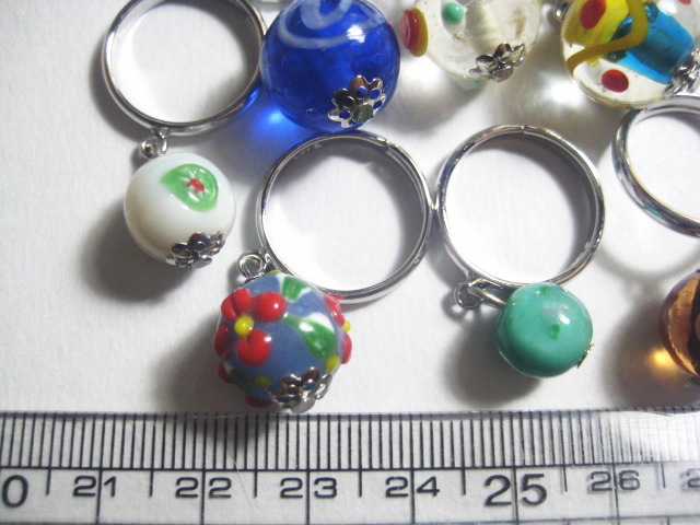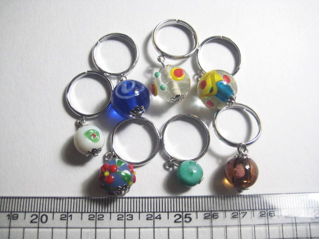 とんぼ玉リング 7本セットです。