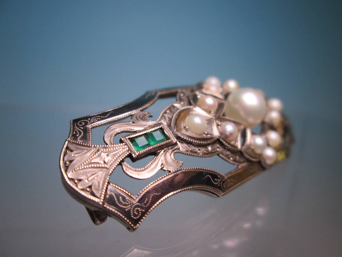 【江月】アンティーク・彫金細工 本真珠飾りの葡萄の帯留め 8g