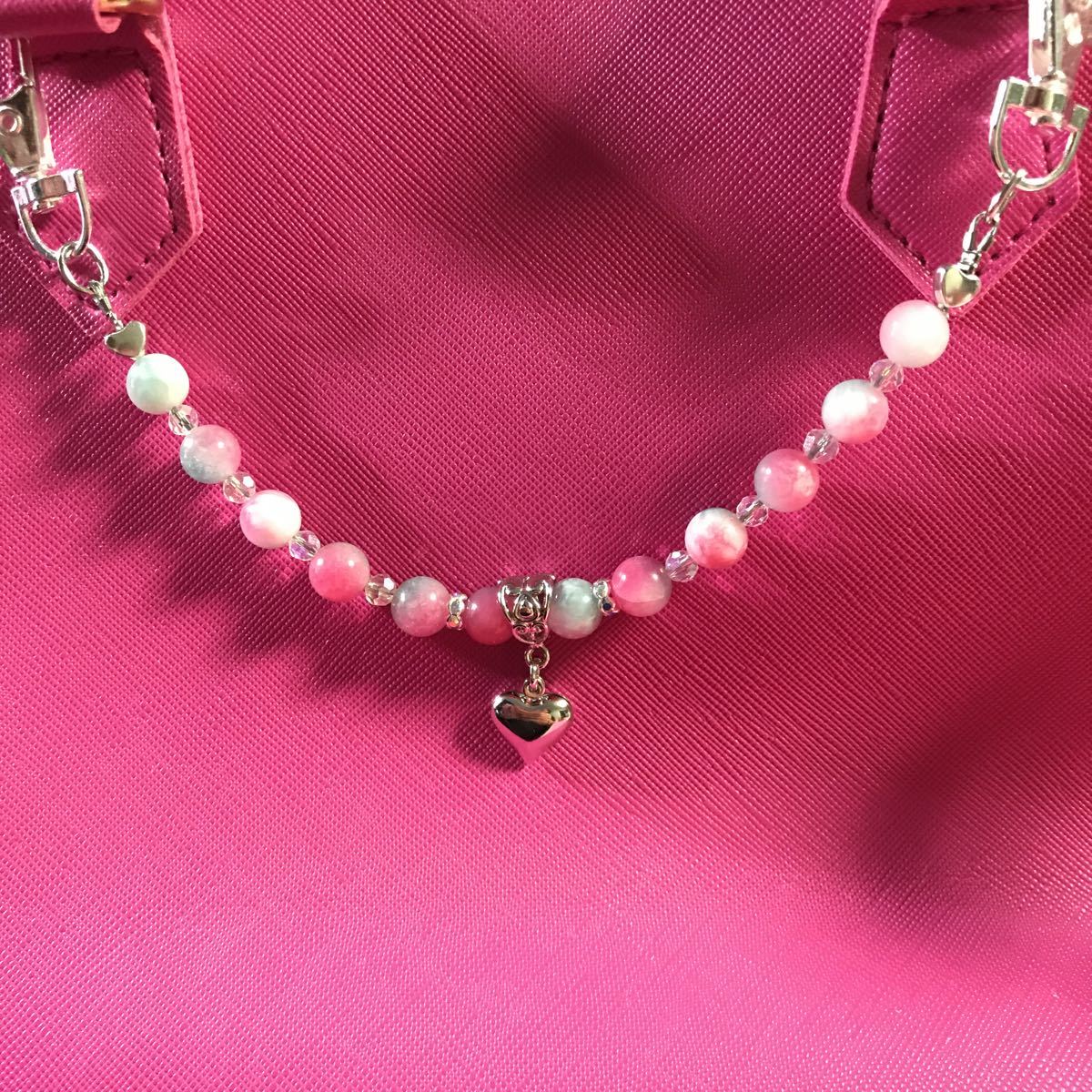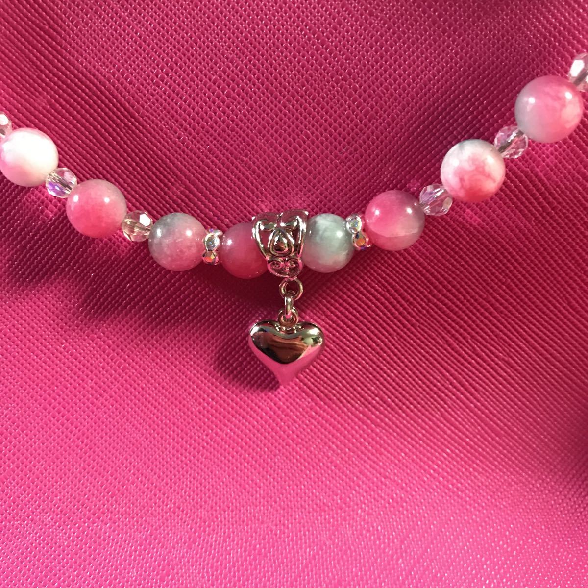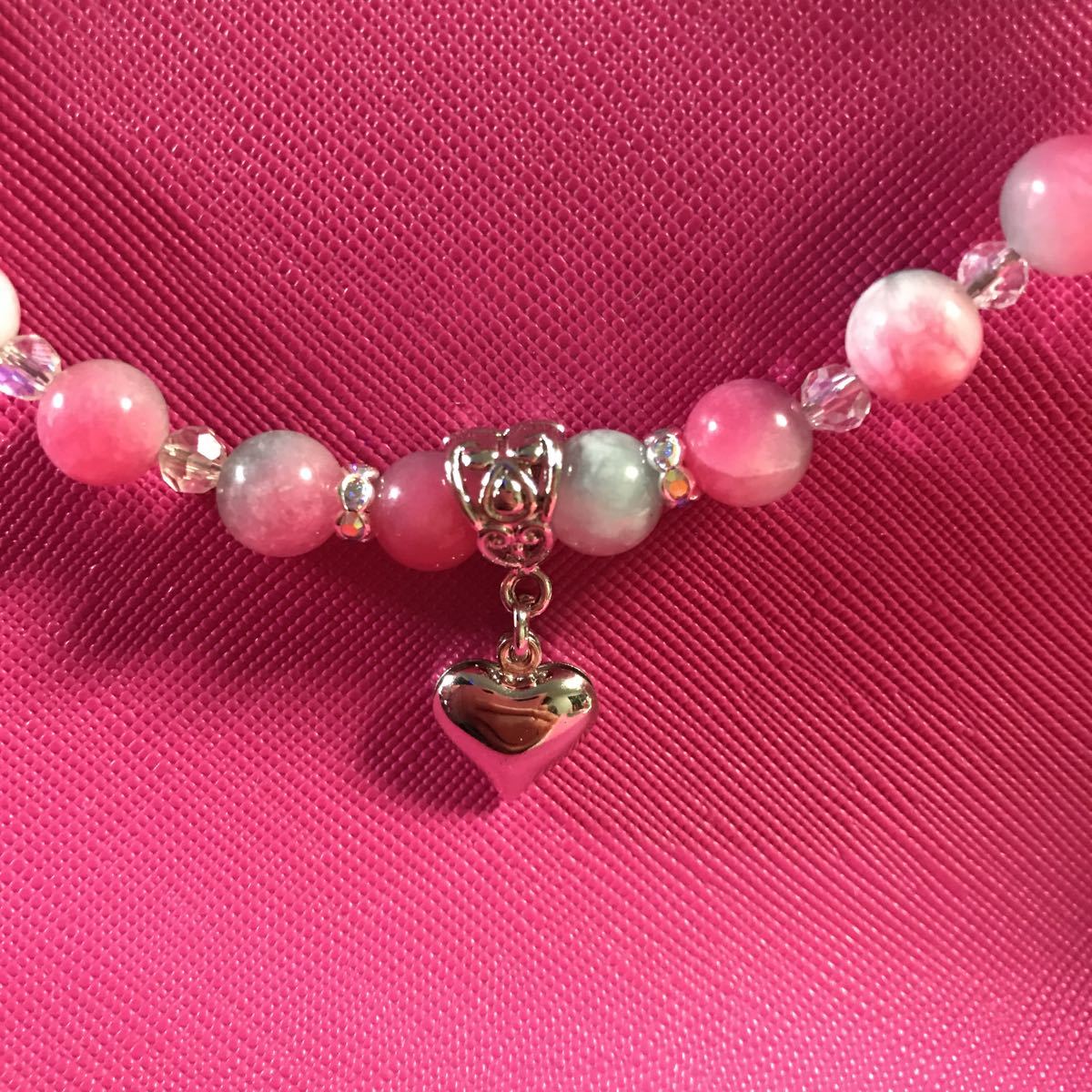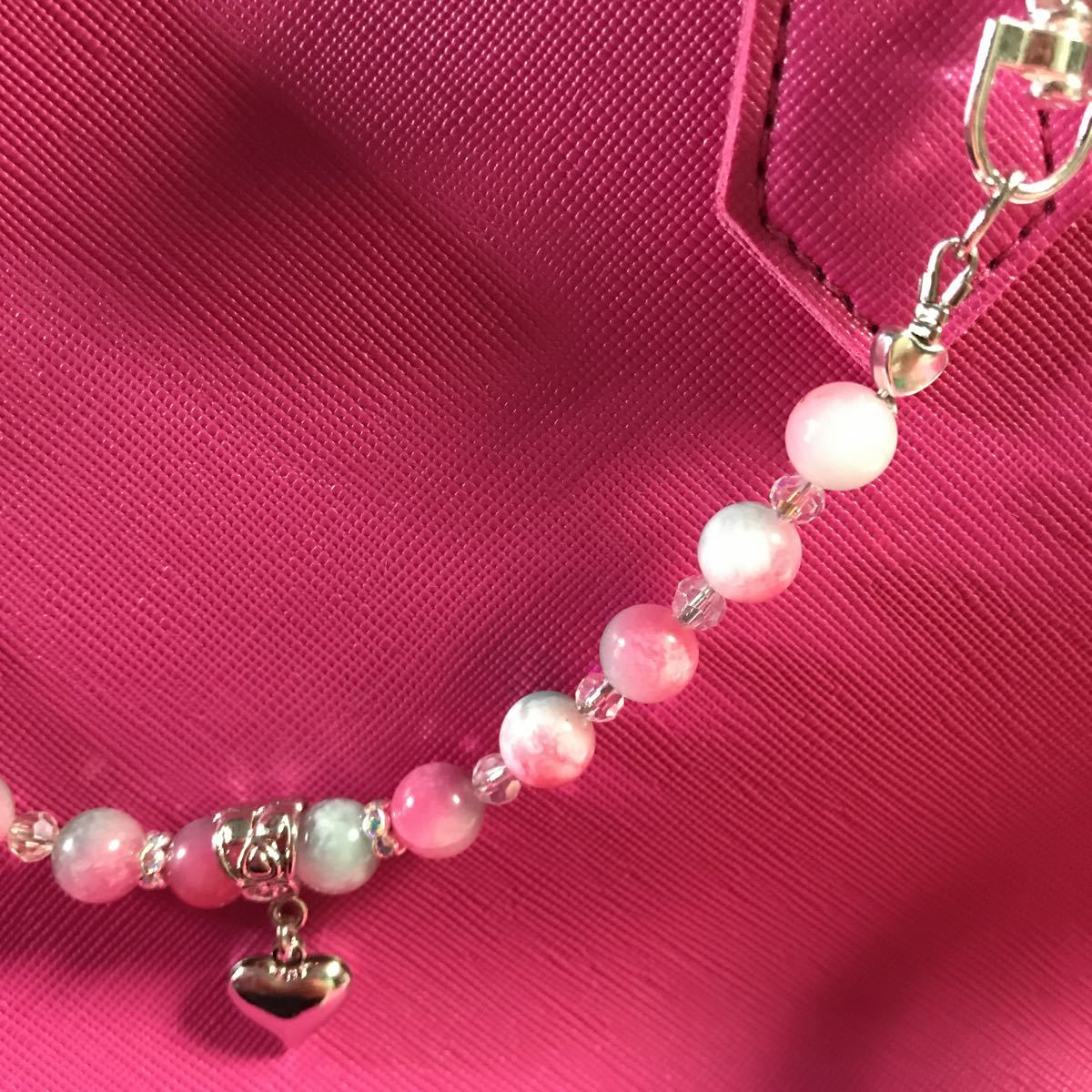 8ミリの天然石使用しております。ピンクとグレーご混じったとても可愛いストーンです。