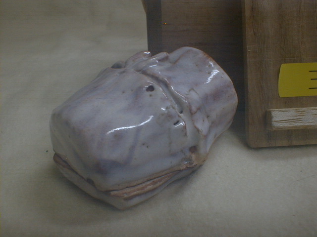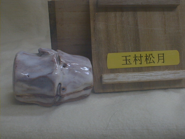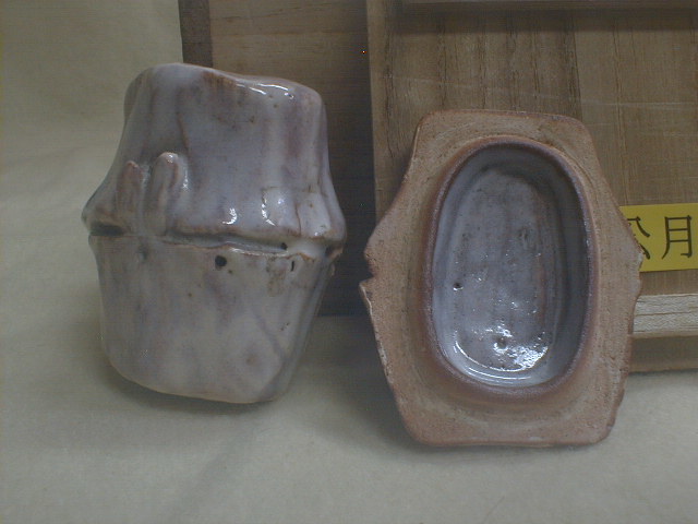 萩焼 玉村松月 白い釉薬 3.5x5.5x4.5cm 75g 香合 茶道具