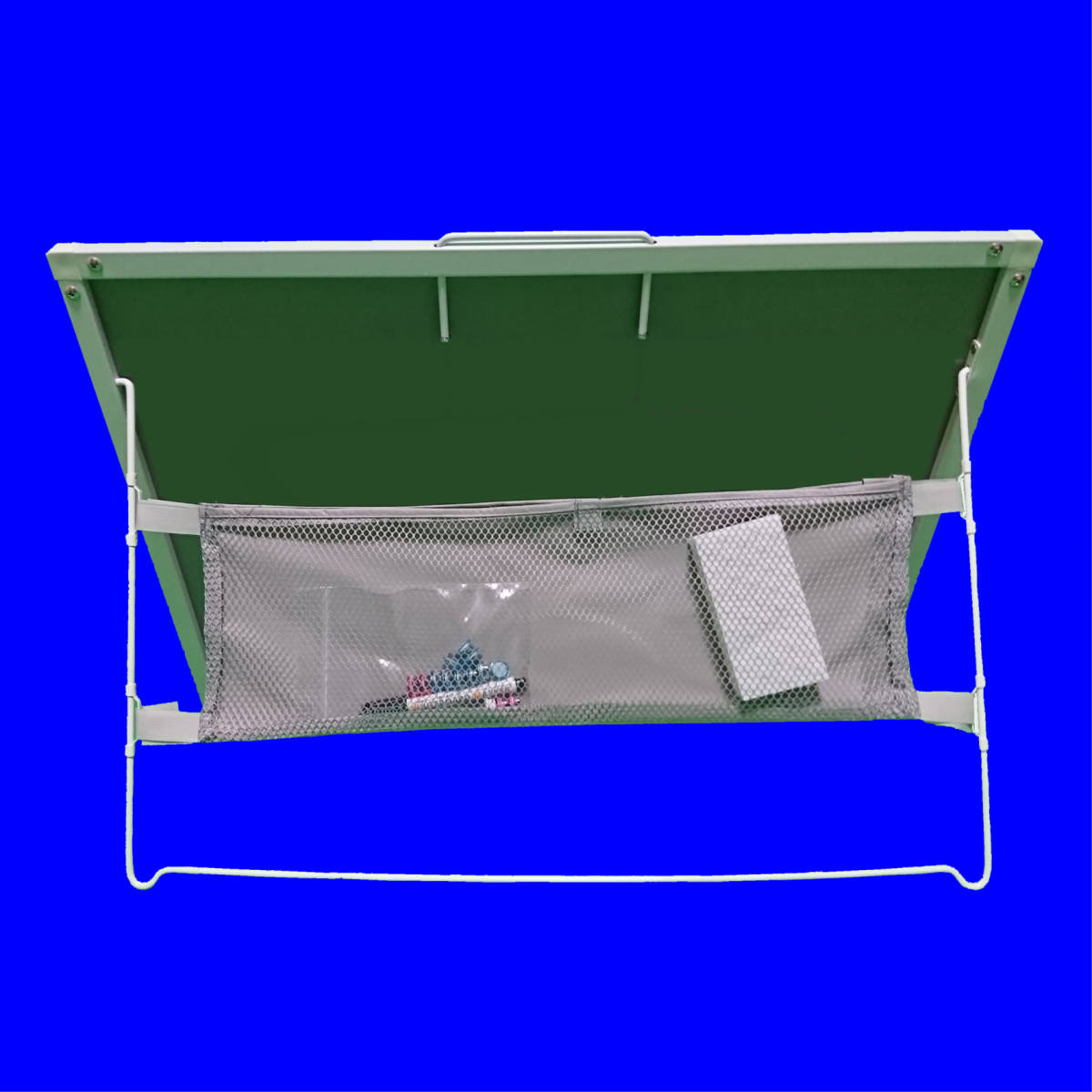◆スタンドについている収納袋にマグネット・マーカーペン・黒板消しなど