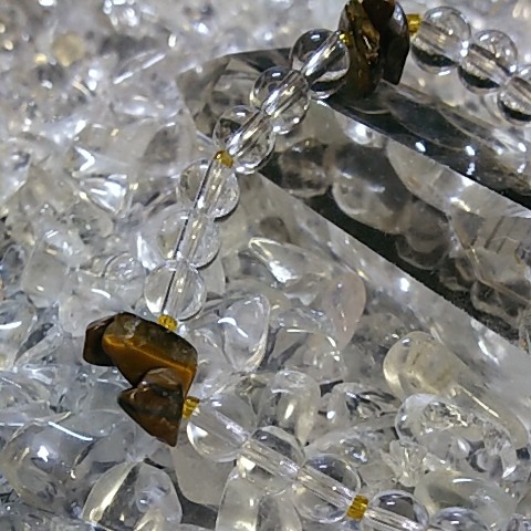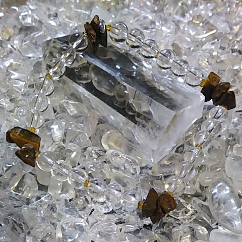 タイガーアイと天然石水晶をつかいました。ハンドメイドブレスレットになります。