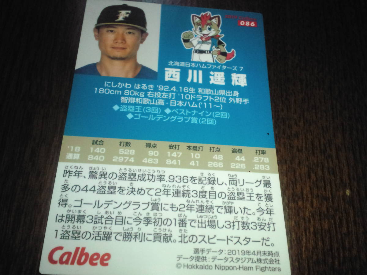 [同梱可]★西川遥輝(北海道日本ハムファイターズ)★レギュラーカード(086)☆2019年カルビープロ野球カード第2弾