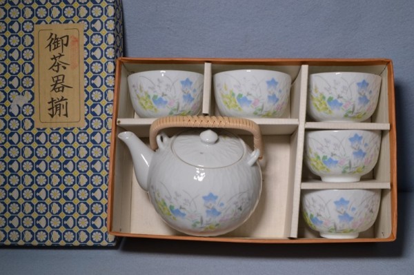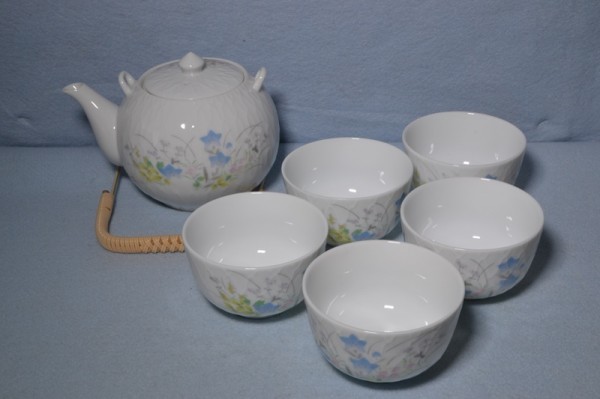 ●桔梗柄の茶器揃、急須・湯呑み、5客です。