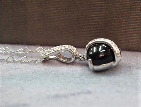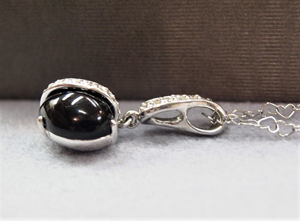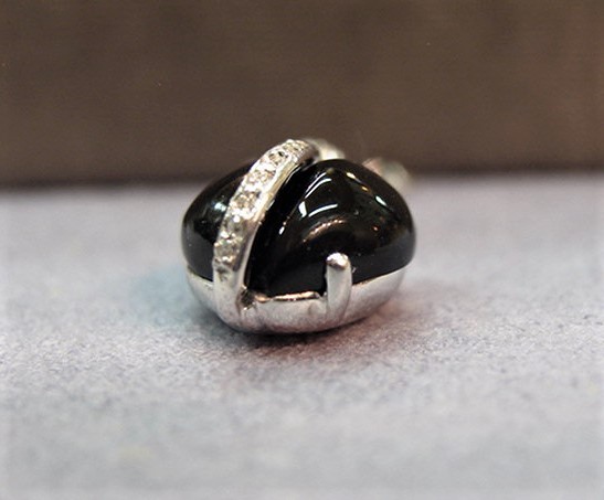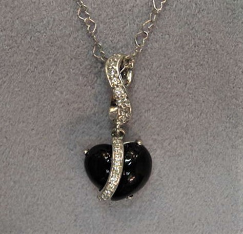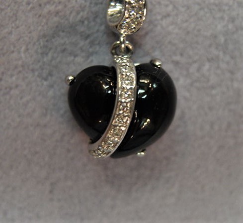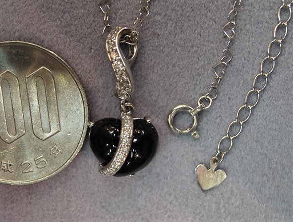 ♪ジュエリー・ブランド【A・D・A】(Art des Anges:天使の芸術)の【ペンダント・ネックレス】の紹介です!ご自分へのご褒美に、大切な方へのプレゼントにどうぞ!【K18WG】製、【ハート型】で、テリ・色の良い、プックリとした【天然:ブラック・オニキス】に【天然ダイヤモンド:0.14c】入りペンダント!個性的・上品・オシャレ・クールな、ペンダントは、年齢を問わず、どなたにもお似合いになります。*ネックレスも、ハート型パーツをつないだチェーンで、長さは、調節可能で、約35.5㎝から、40㎝まで、使えて、便利です!