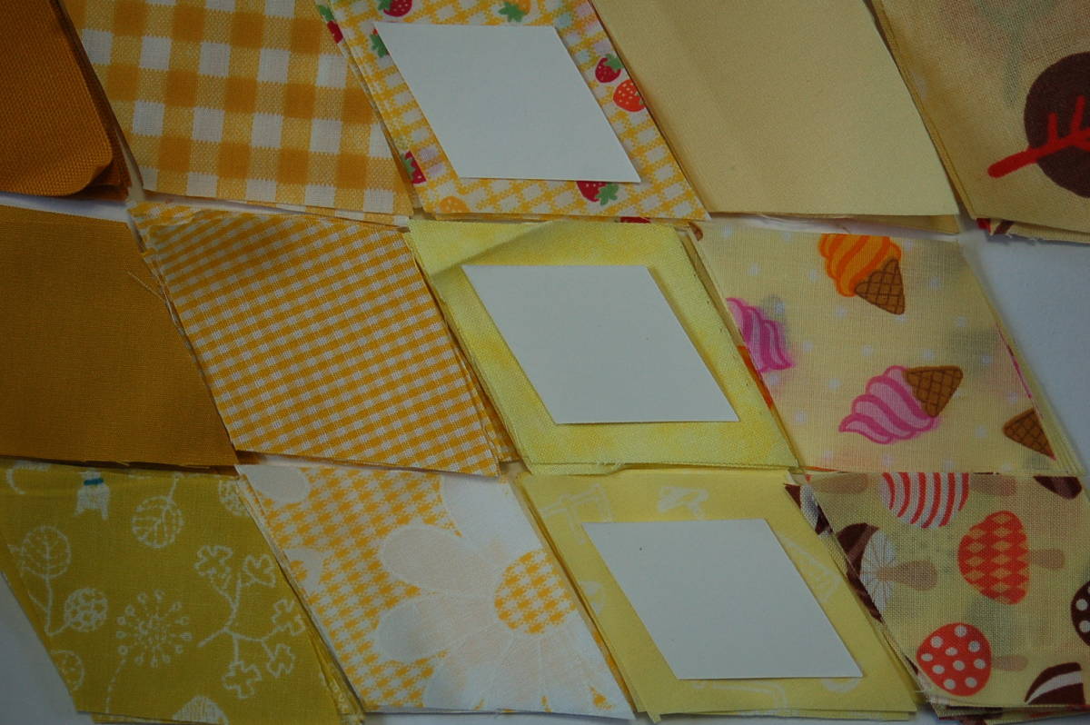 パッチワーク用ひし形出来上がりサイズ35㎜に裁断してます。