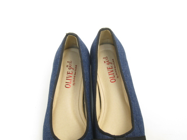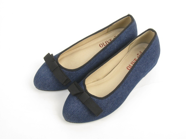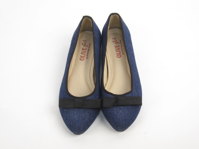 美品 オリーブデオリーブ OLIVE des OLIVE スリッポン パンプス 靴 リボン S ネイビー C630