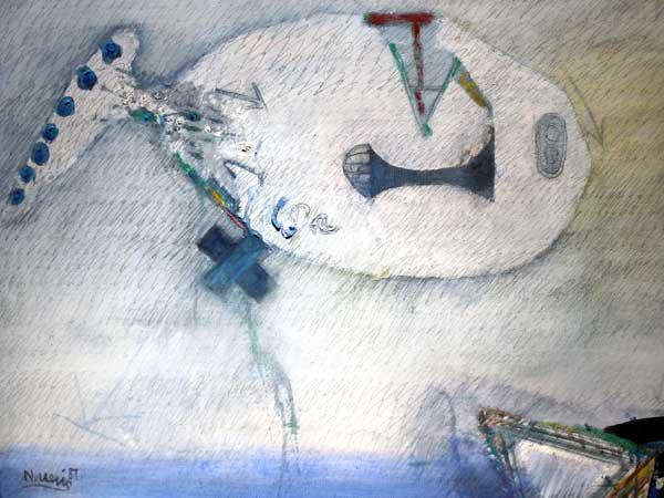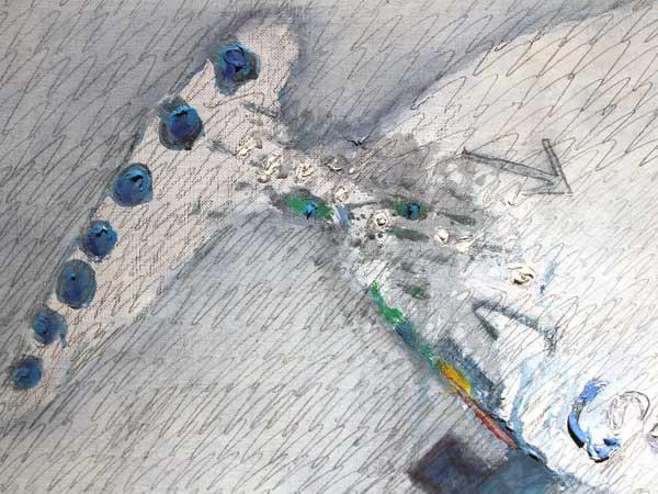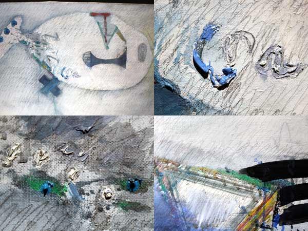 画面全体をブルーグレーで塗りこむことが多い作風から、