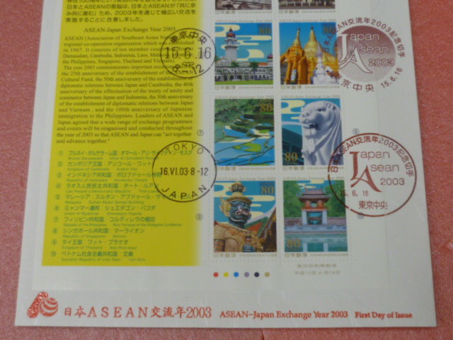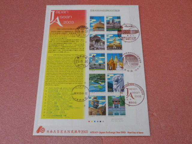 19 F#1889A 日本 初日カバー 2003年 日本ASEAN交流年2003 10面シートレット