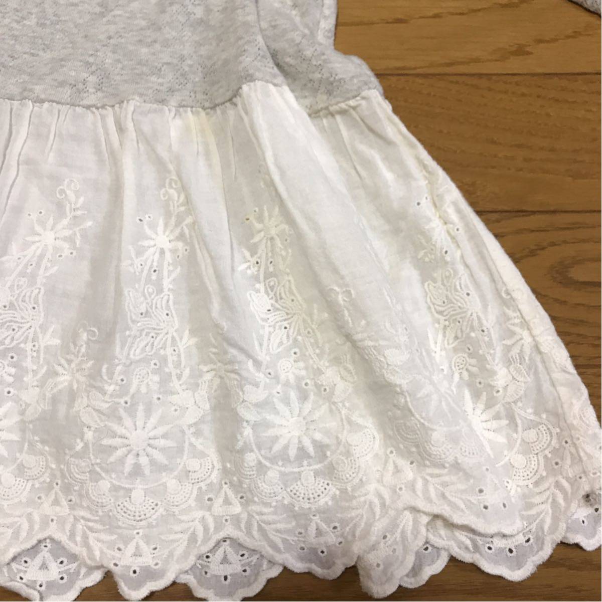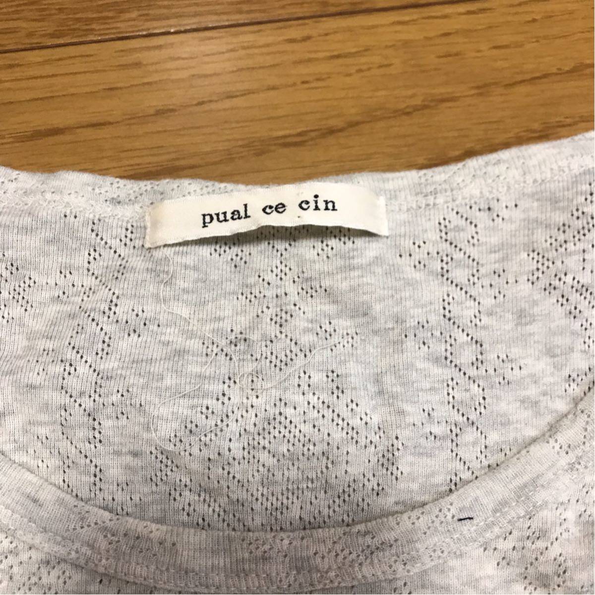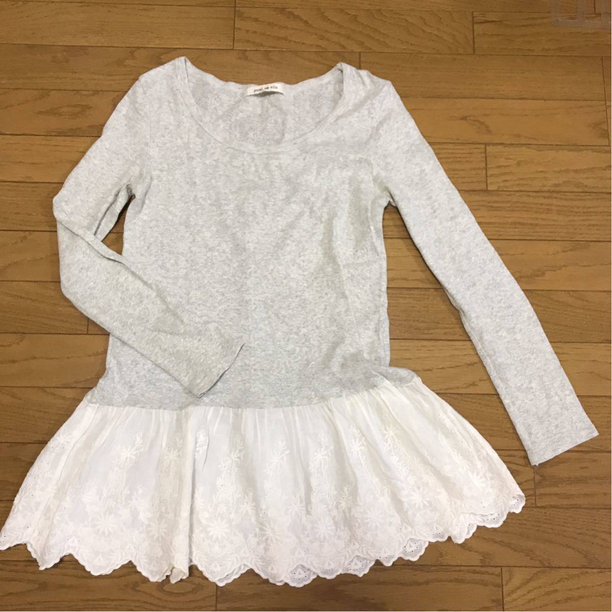 pual ce cin ピュアルセシン ライトグレーコットン 長袖カットソー 裾スカラップレース ナイスクラップ