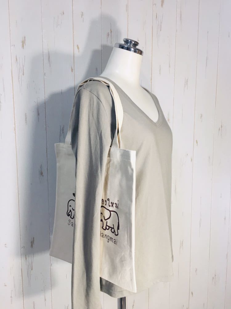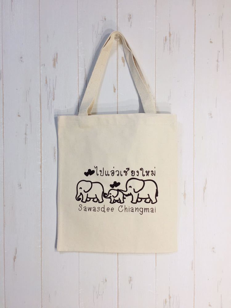 タイのマーケットで購入したゾウさんが描かれているトートバッグです。