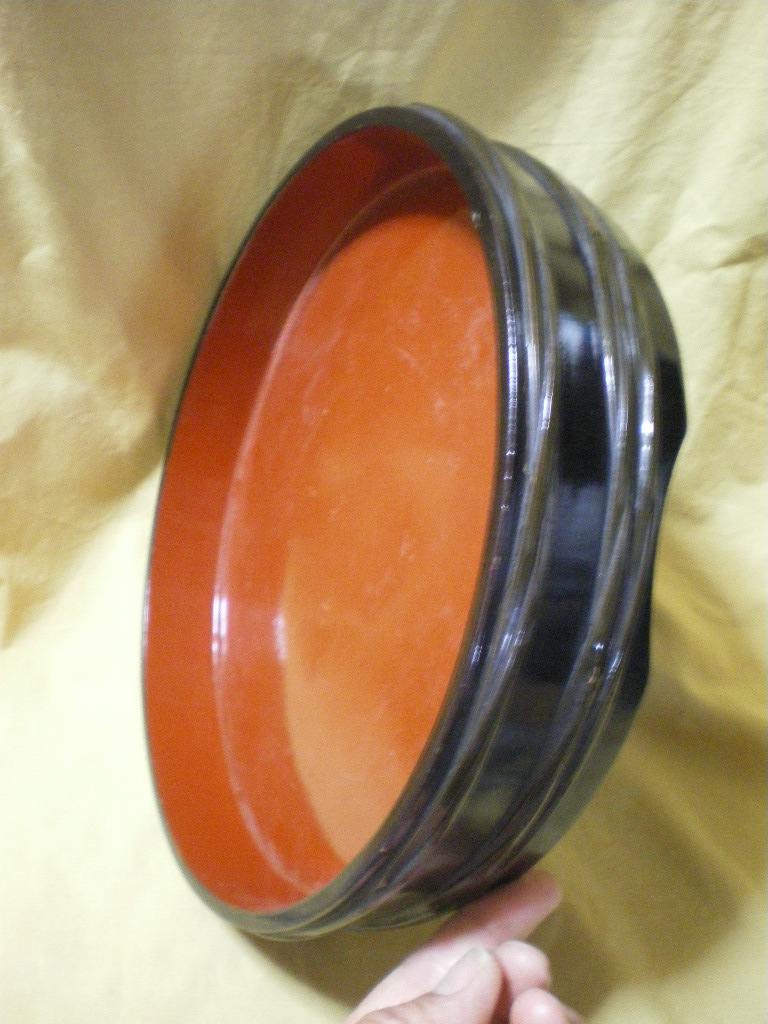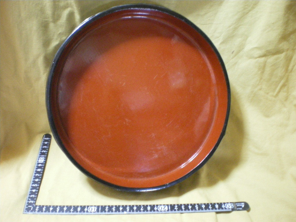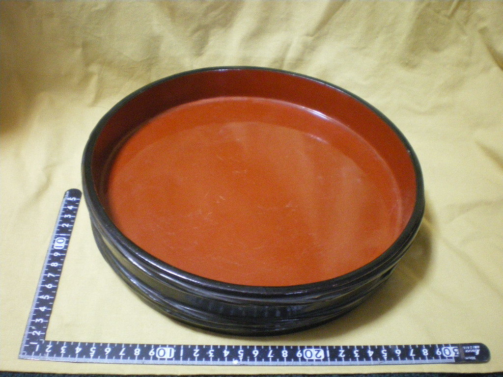 珍品フリマ・うるし・漆器] おけ 桶 使用感あり 外径 26.5cm 全高6cm 容器としての深さ3.3cm [送料無料]