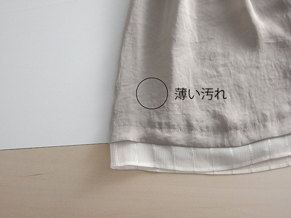 ・シワにまぎれてあまり目立ちませんが、右裾に薄い汚れが見られます。画像参照