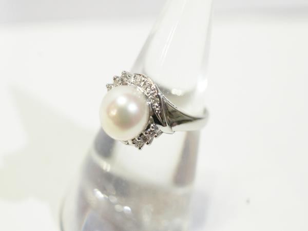 ■商品名○新品同様 パール 真珠 プラチナ Pt900 ダイヤ 0.15ct 指輪 リング 6.3g R0063 | |||||||||||||
