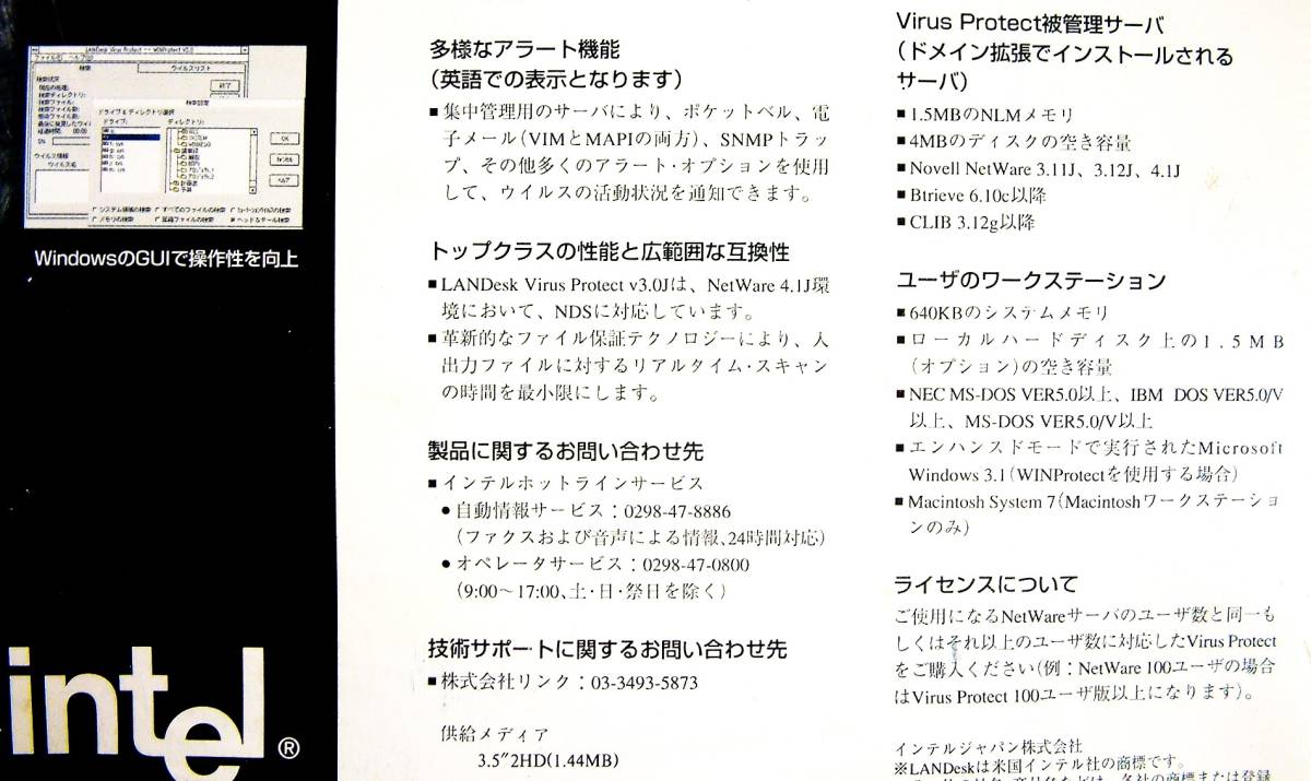 【3930】インテル LANDesk Virus Protect 250ユーザー 新品 Intel ランデスク ウィルス プロテクト セキュリティ NetWare対応 ウイルス対策