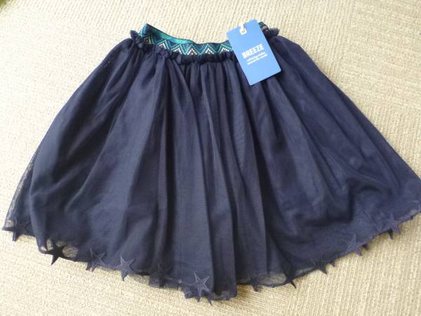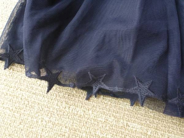 2600円新品BREEZE 紺ネイビー チュールレース スカート 発表会 ☆裾に星デザイン 90