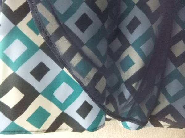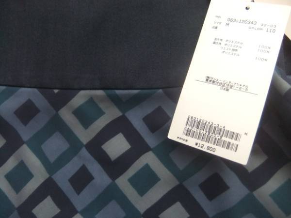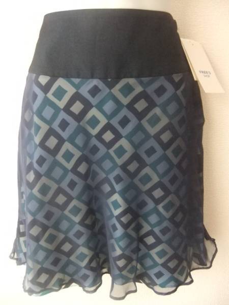 新品タグつきの、FREE'S SHOP フリーズショップの、幾何学デザイン柄に紺色シフォン重ねフレアースカートです。
