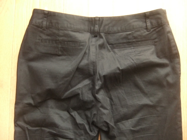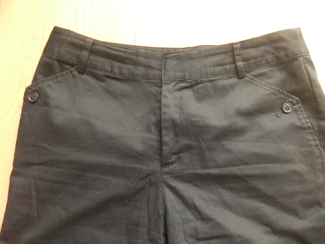 ベーシックで着まわししやすい黒のストレッチコットン七分丈パンツです。