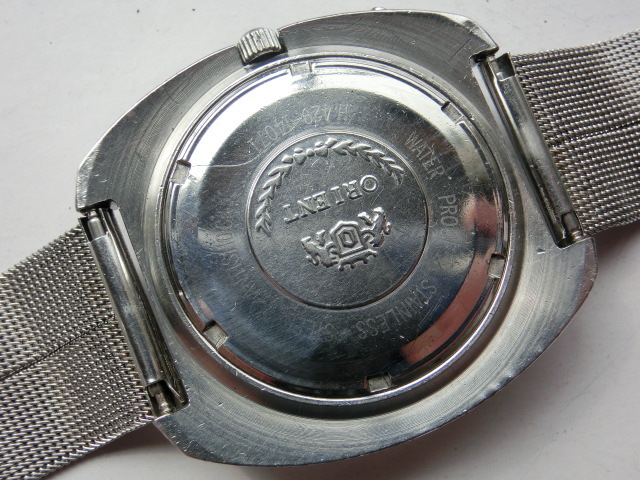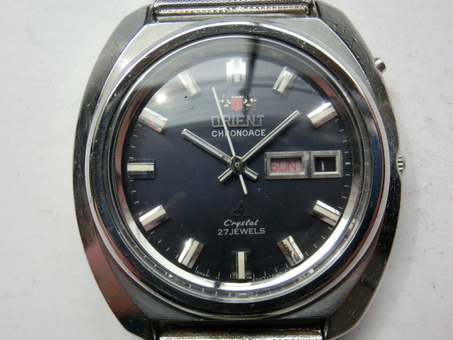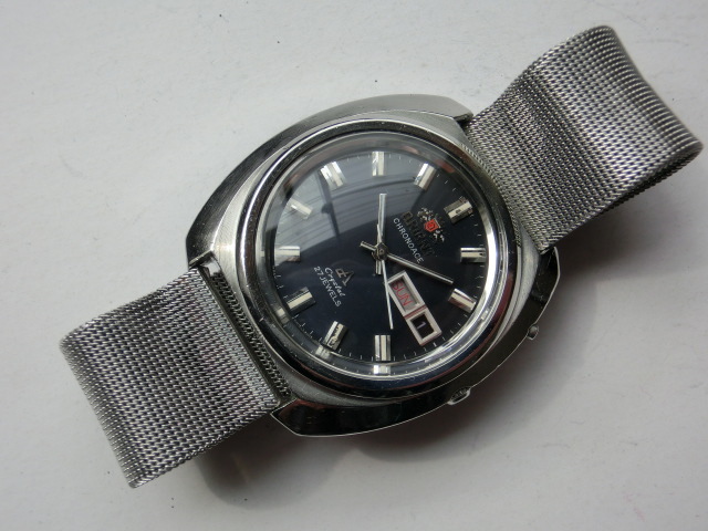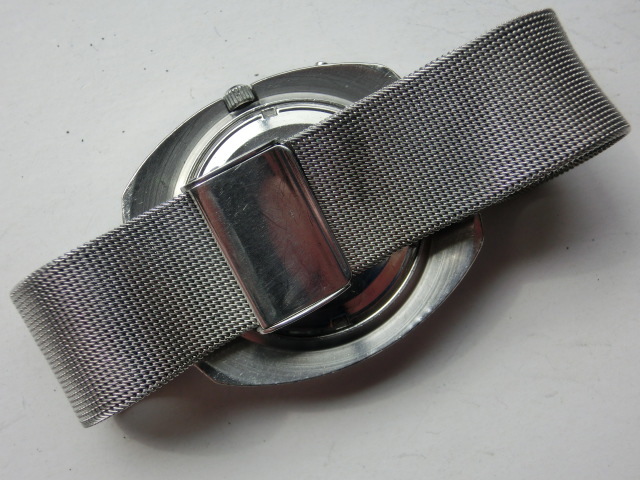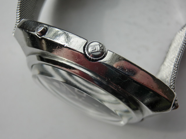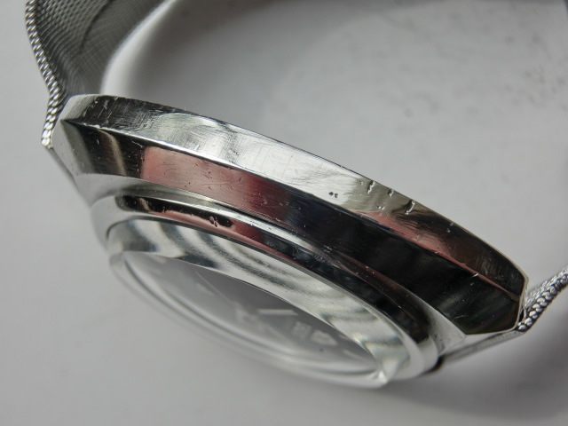 特徴的なケースは大きめで腕に装着すると迫力があります。