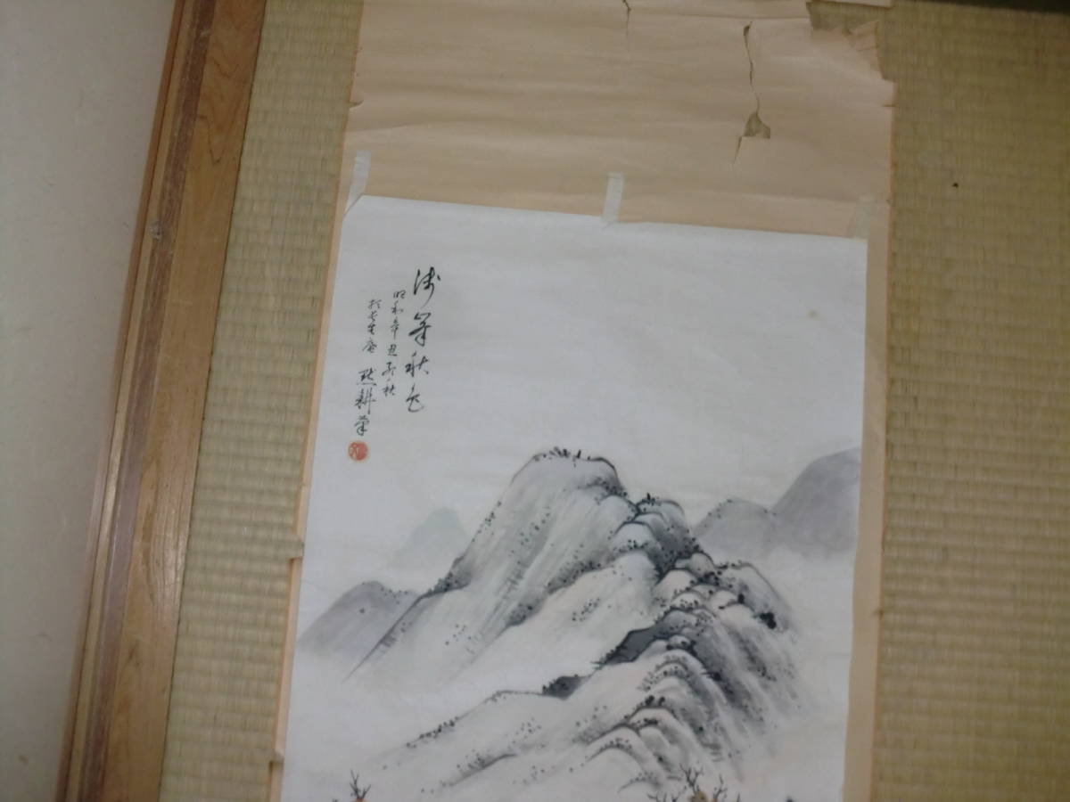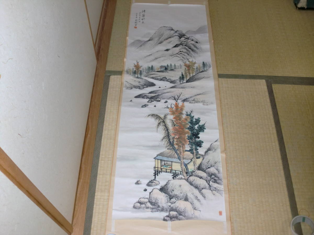 【模写】 まくり 中京画壇 服部黙耕 トテモ綺麗で洒落た秋景山水圖 美品 桑名