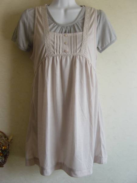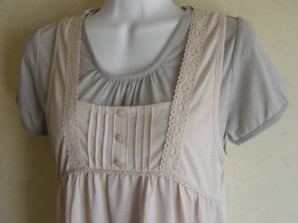 新品L★グレー半袖カットソー&ベージュチュニックアンサンブル