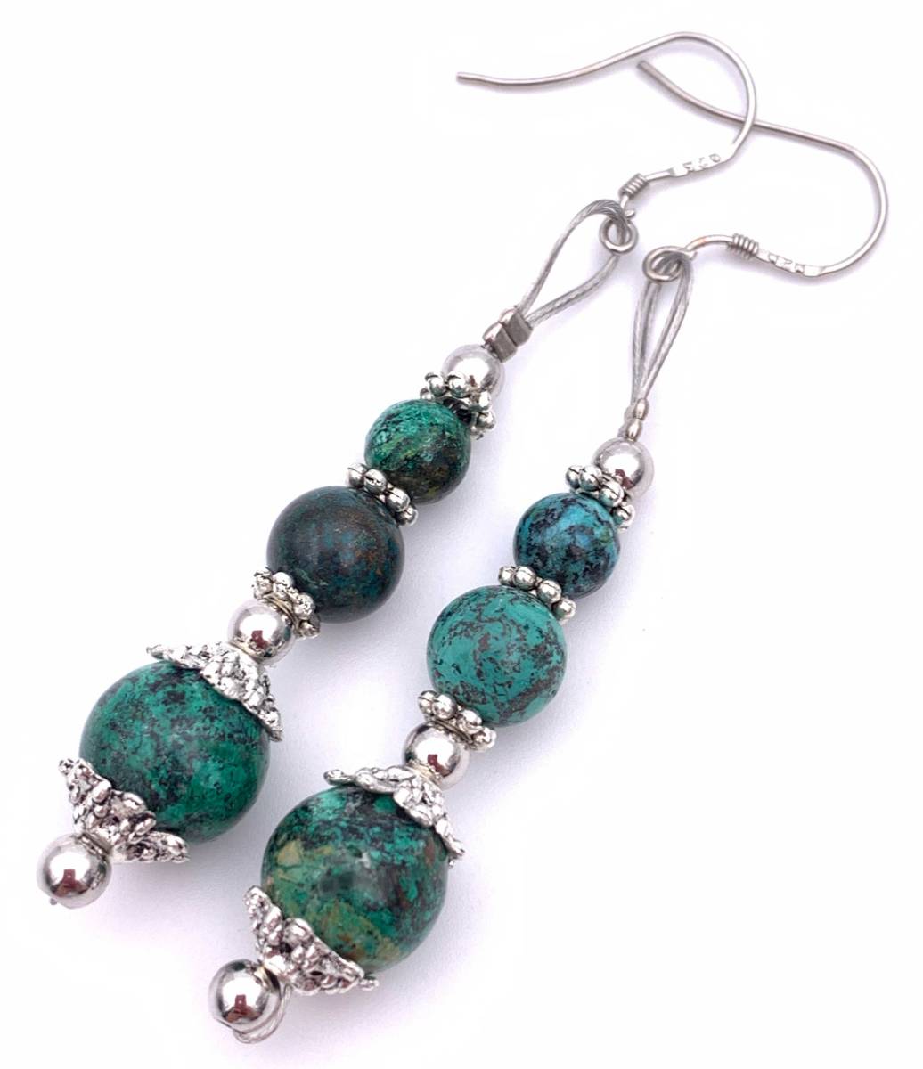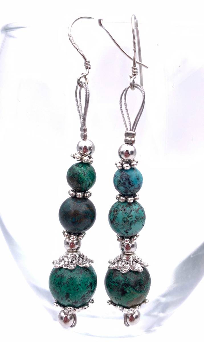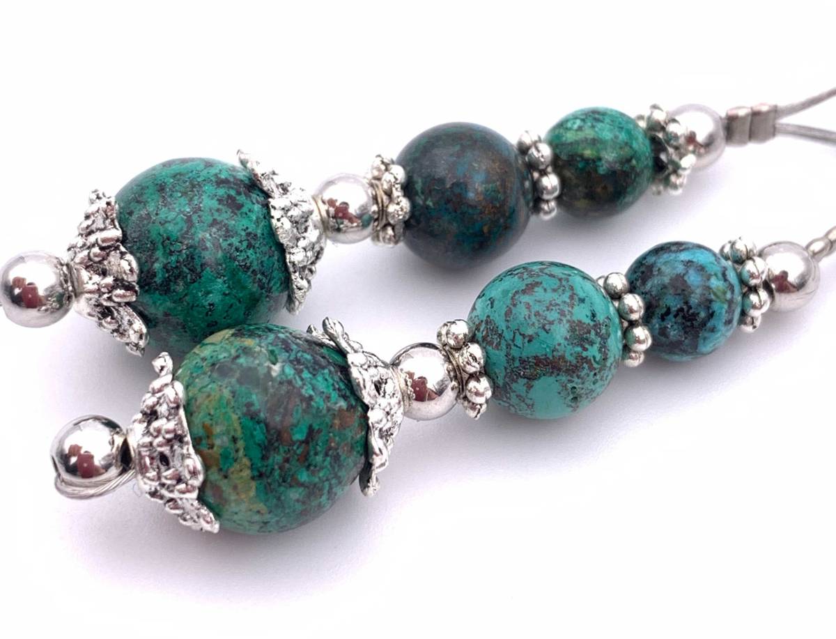 手作り!オリジナル★天然石クリソコラ(珪孔雀石)のピアス