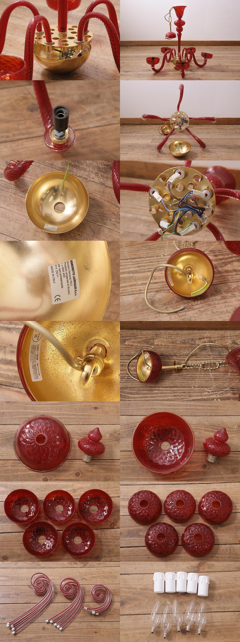 中古 SIGNORETTO LAMPADARI ムラノガラス(ベネチア) レッド インパクトのある5灯シャンデリア(天井照明)(R-043443)です。