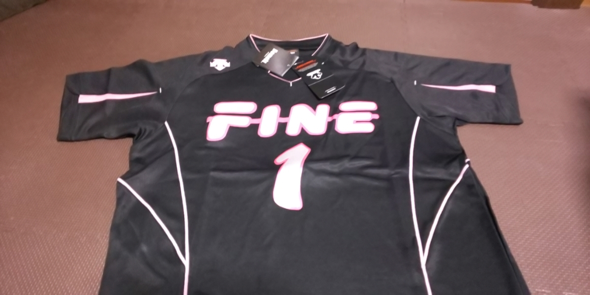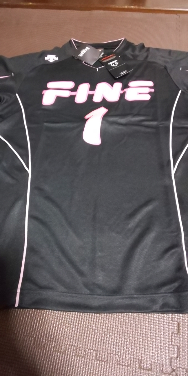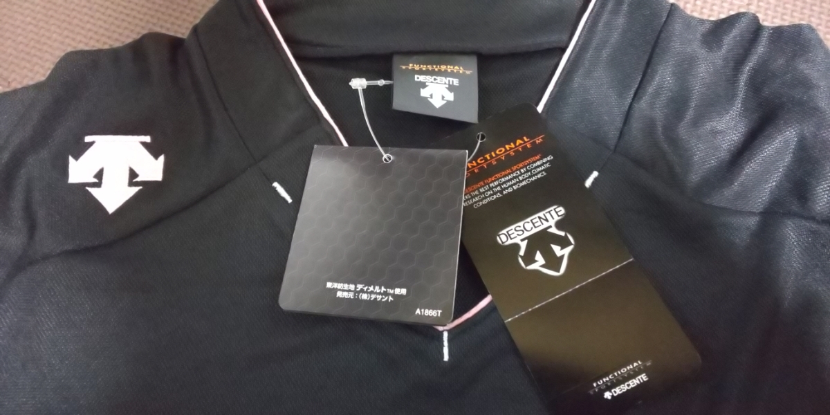 新品タグ付きデサント、黒、蛍光ピンク、シルバー半袖ストレッチトップス