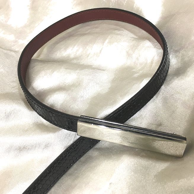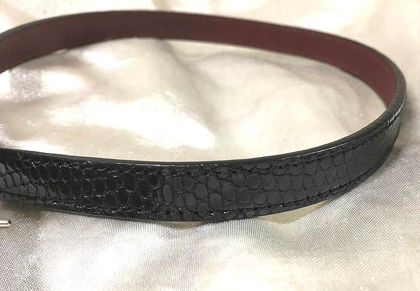 サイズ:XS-実寸(約)全長80×幅1.3cm。バックルに留めた際の長さ65cm。*バックル裏金具二個にベルト穴を差すタイプ