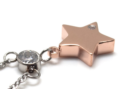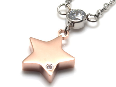 ステンレスネックレスピンクゴールドスター&ジルコニア